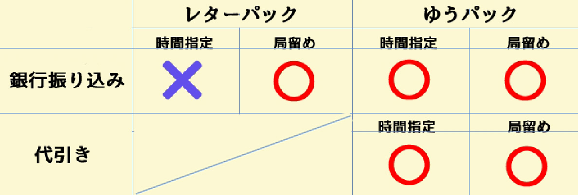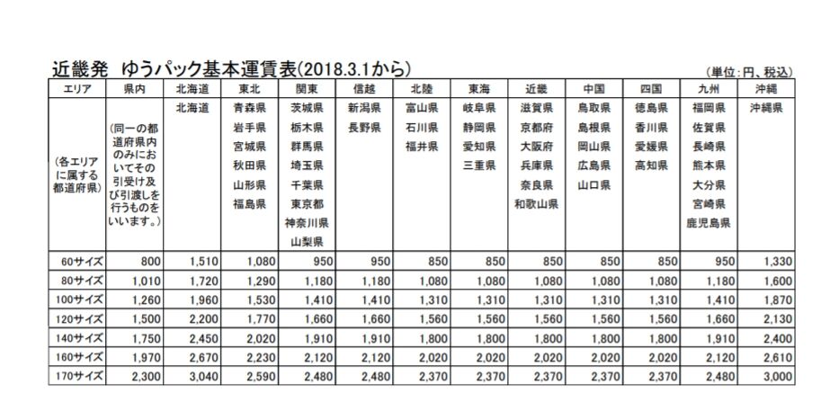 ゆうパック料金表(ご自分の受け取り先を参照ください)