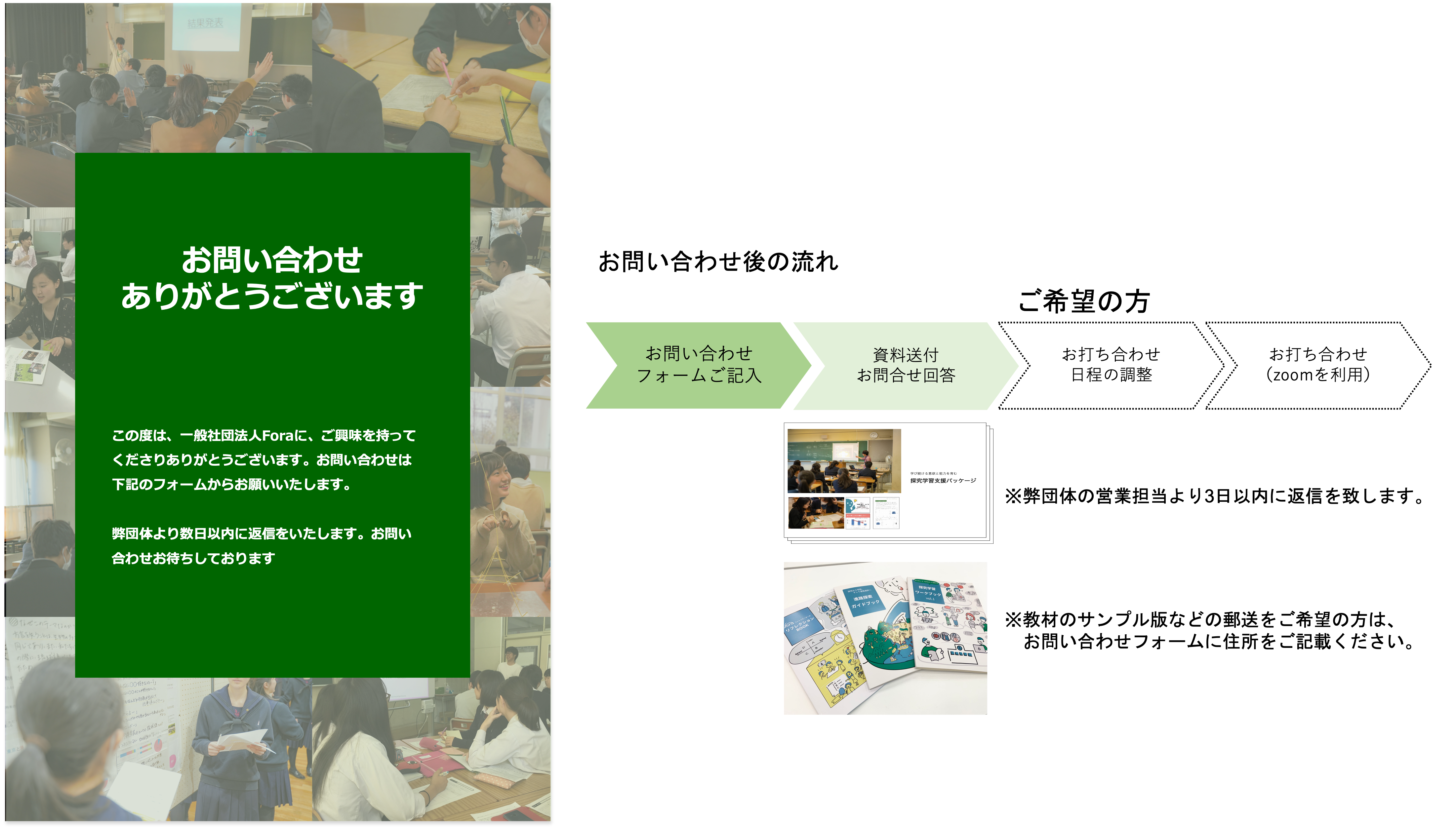 お問い合わせ、ご質問、資料請求などはこちらよりお気軽にご連絡ください。