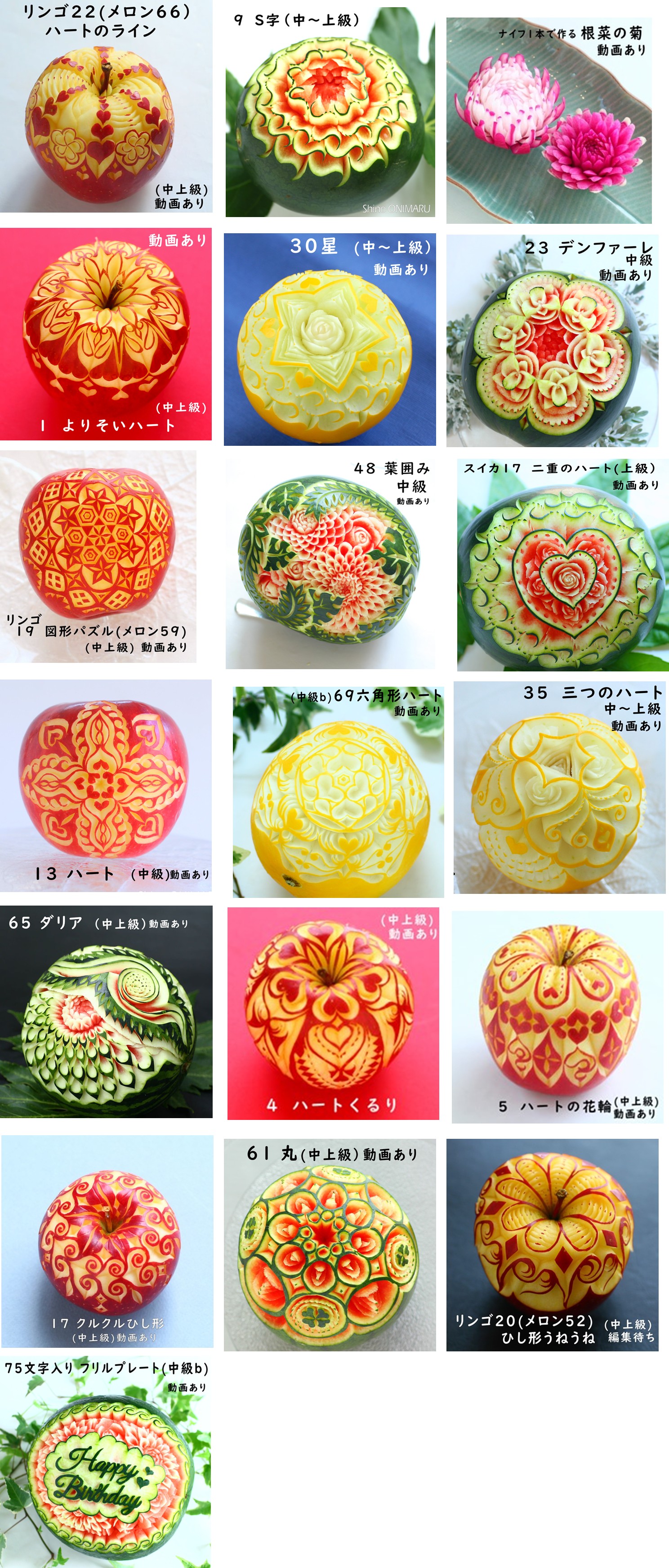 レシピ動画を使った「フルーツカービング中級b」レッスンのお申し込みフォームです。ご経験20回以上の方向けの作品です