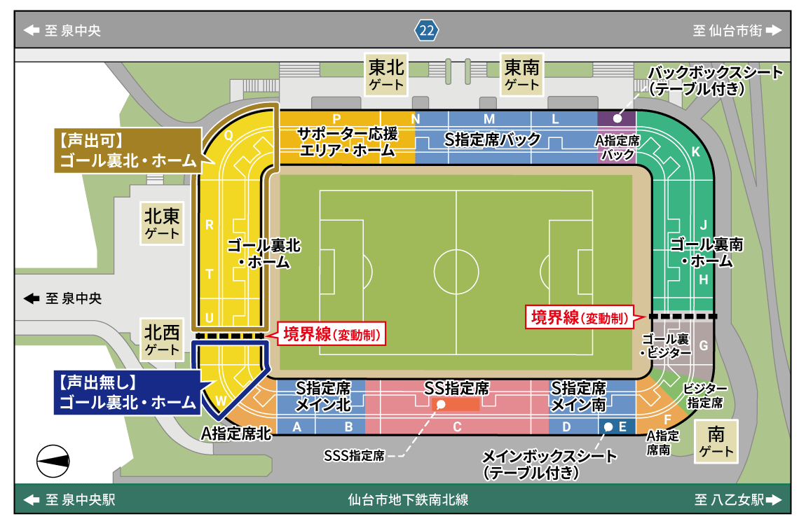 ユアテックスタジアム仙台 (11:30着/キックオフ13:00~/15:30発)