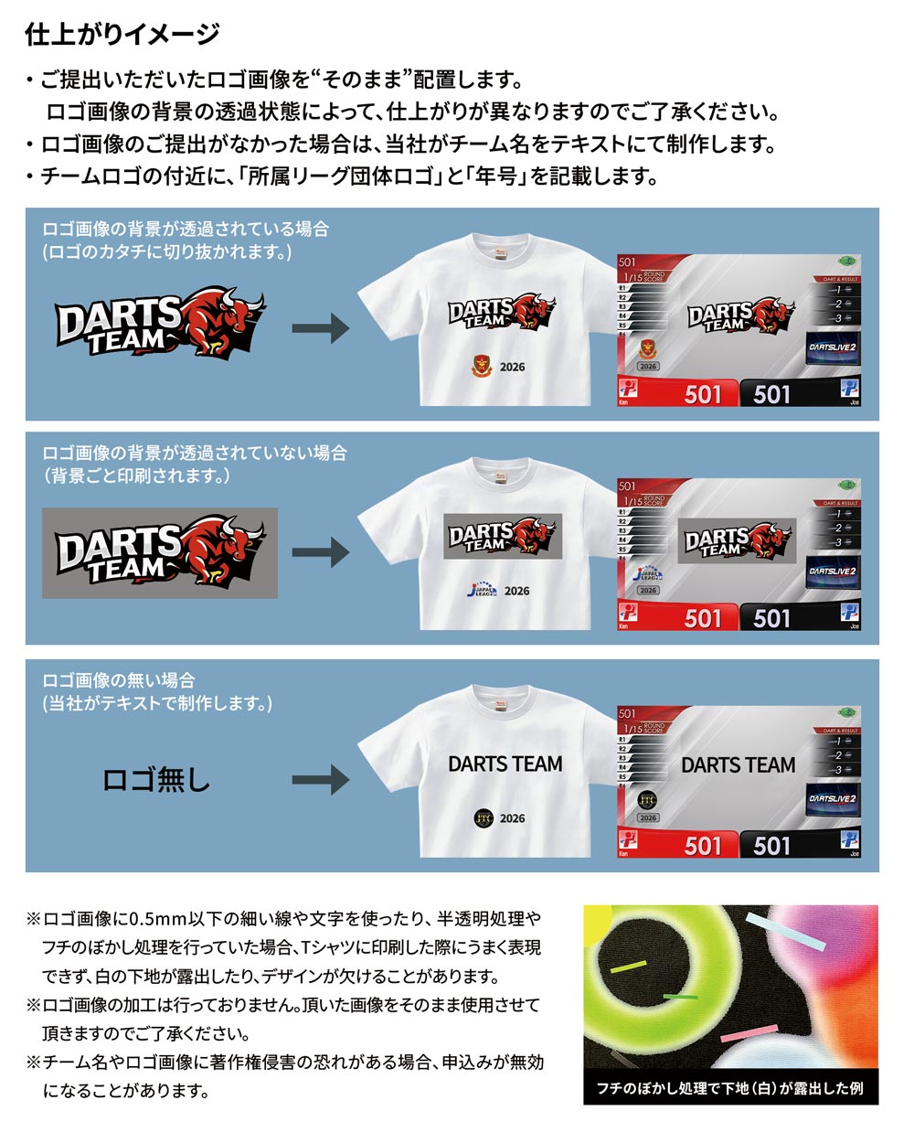 6. 他リーグチームのTシャツを注文しても、DARTSLIVEテーマのシリアルコードは取得できないこと。