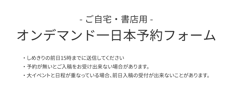 こちらは「自宅・書店納品用」の一日本予約フォームとなります