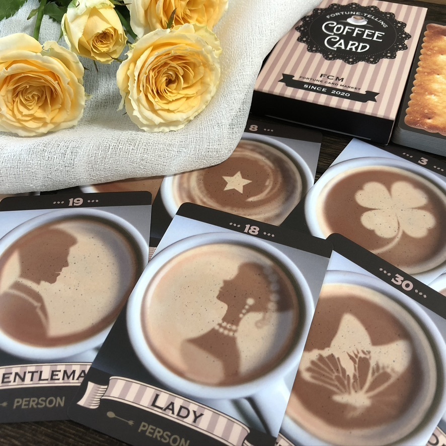 ◆コーヒーカード占いの占い方 コーヒーカードのデッキは全部で32枚です。基本のワンオラクル(1枚引き)始め、2枚以上のカードの組み合わせで読むツーカードやスリーカード、過去現在未来を占うクロス読み、総合的な関係性を読み解く全32枚を使ったグランタブローなどは、ルノルマンカード占いと同様です。