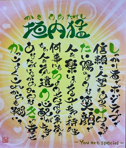 ★名前詩は、贈りたい相手の方のお名前の文字をいれて