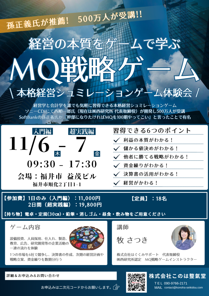 ㈱西研究所認定 MQ戦略ゲーム(MG)インストラクター
