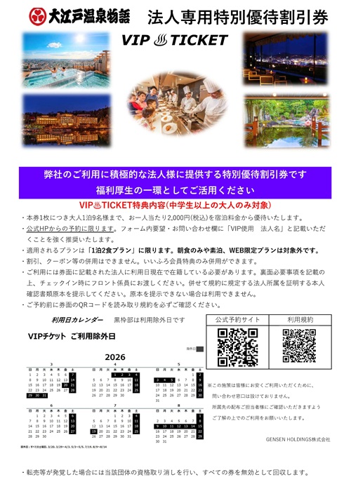 大阪府職員生活協同組合 大江戸温泉物語VIP TICKET