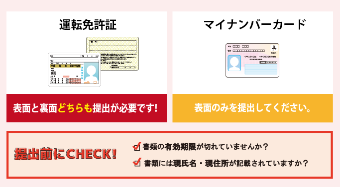 【表面】免許証の場合は免許証の表面の添付をお願いします。