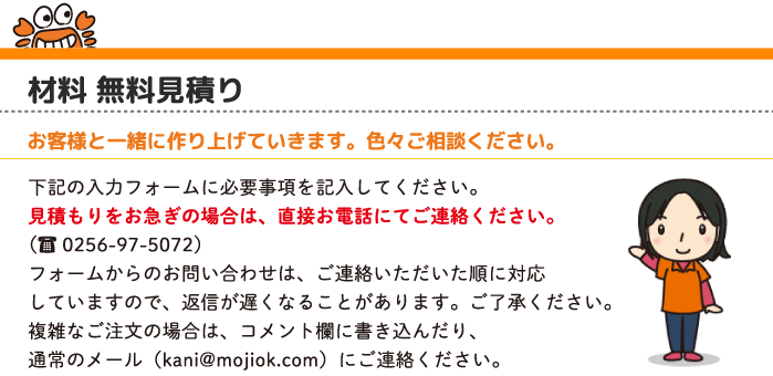 角丸、穴あけ加工などのご希望もこちらに記載してください。