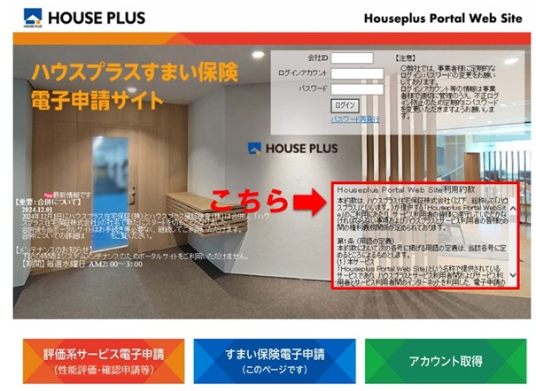 ※1 Houseplus Portal Web Site利用約款はポータルサイトログイン画面にて確認できます。
