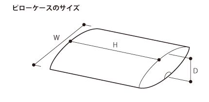 ※上記の図をご参照。ピローケースはフタ部が湾曲した構造で上図の「H」部が凹み部同士の内寸です。コーナー4箇所の寸法を指定場合は備考にお書きください。