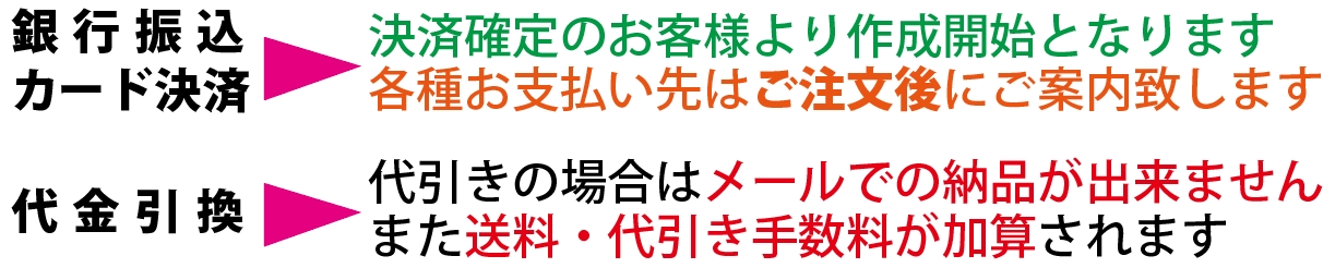 ※「目安として1週間以内」に納品ご希望のお客様はお急ぎ便をご選択下さい。最優先でご対応させて頂きます。(土日祝除く)