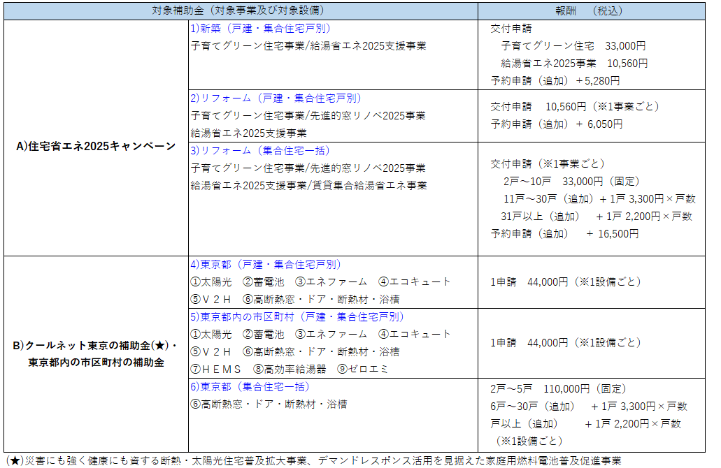 B)クールネット東京の補助金、東京都内市区町村の補助金
