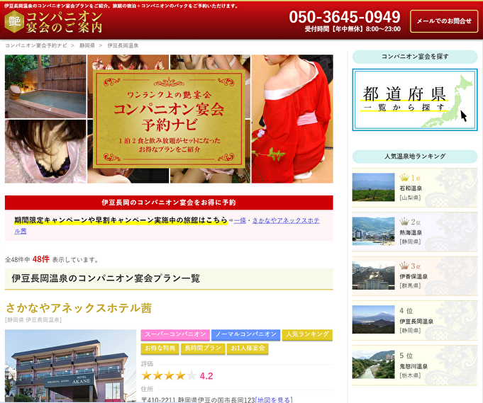 伊豆長岡温泉のコンパ宴会プランの料金詳細・予約サイト
