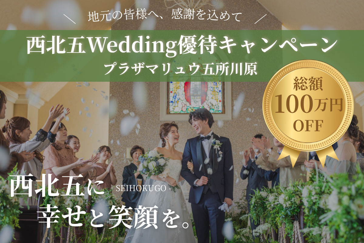 □西津軽郡、北津軽郡、五所川原市 在住者、または西北五出身で市外在住者(新郎新婦どちらかが該当で適用)