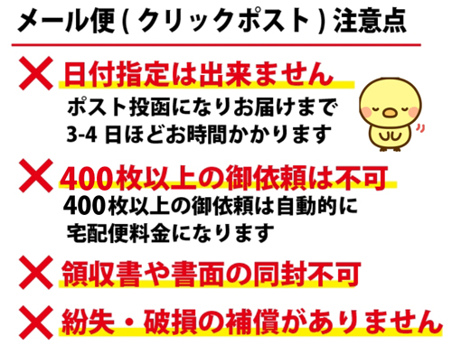 ☆ただし200枚以上の御依頼のお客様の場合は無料サービスとなります☆