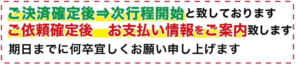 正式金額はご依頼後別途お知らせを致します。