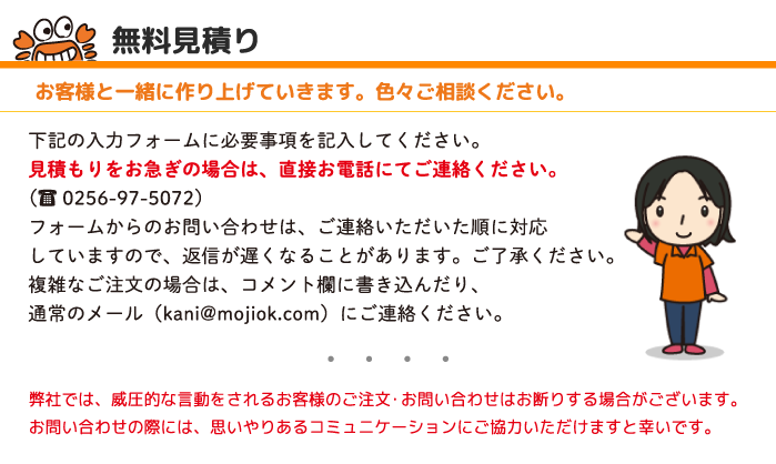特急料金:商品価格の10%、最低価格1,100円 その他ご希望内容などにより別途計算の場合あり