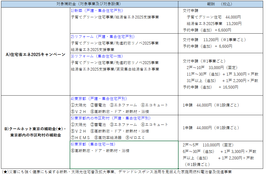 B)クールネット東京の補助金、東京都内市区町村の補助金