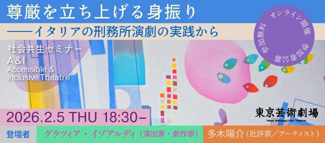 イタリアで約30年にわたり刑務所で演劇実践を続ける劇作家・演出家グラツィア・イゾアルディ。彼女が歩みを止めないのは、演劇の創作に宿る規律・対話・共同作業が、人の尊厳と主体性をそっと呼び覚まし、断たれた関係を結び直していくからではないでしょうか。今回の社会共生セミナーでは、イゾアルディ氏の実践における「尊厳の回復」を手がかりに、私たちの日常にも影を落とす見えない働きにも目を向けます。刑務所で露わになる原理が社会の構造とどう連続するのか。劇作家サミュエル・ベケットを起点に〈管理と分断〉についての思考を深めてきた批評家・アーティスト多木陽介氏とともに、刑務所演劇が私たちに開く「見直しの視線」を探ります。