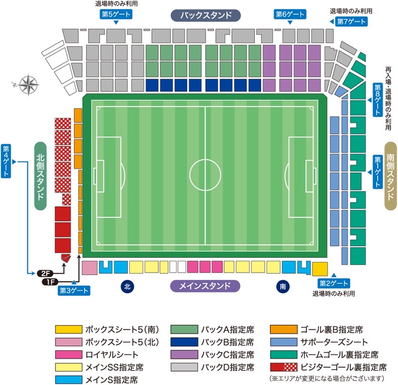 ・チケットは、ビジターゴール裏指定席となります。