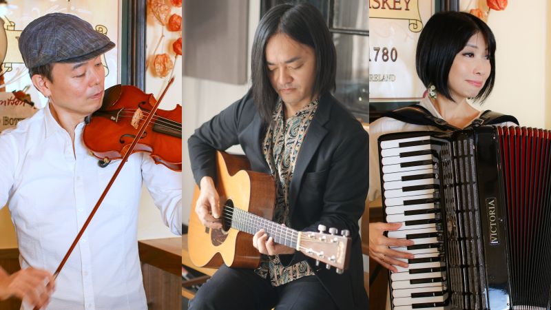 藤野由佳(ac)、壷井彰久(vl)、ファルコン(gt)