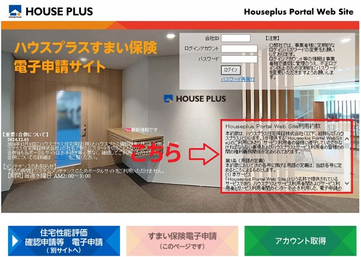 ※1 Houseplus Portal Web Site利用約款はポータルサイトログイン画面にて確認できます。