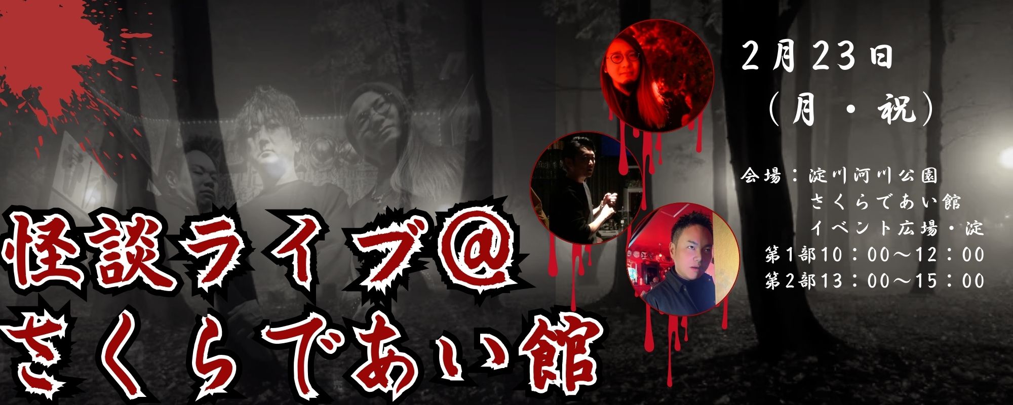怪談ライブ途中での入場は出来ません。開始時間に遅れないようにお越しください。また、トイレなどは予め済ませたうえでご入場をお願いいたします。
