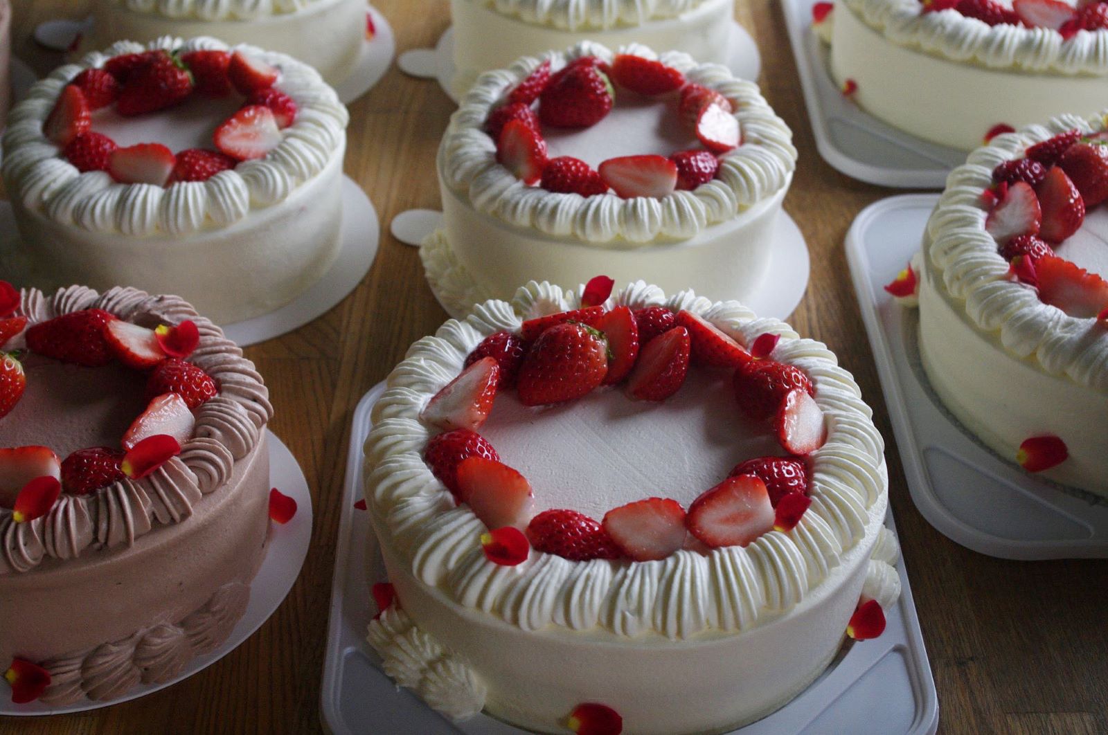 しっとり軽いスポンジに甘さ控えめな乳味感ある上質な生クリームと県産の苺を使用した定番のケーキ。(チョコがけもございます)