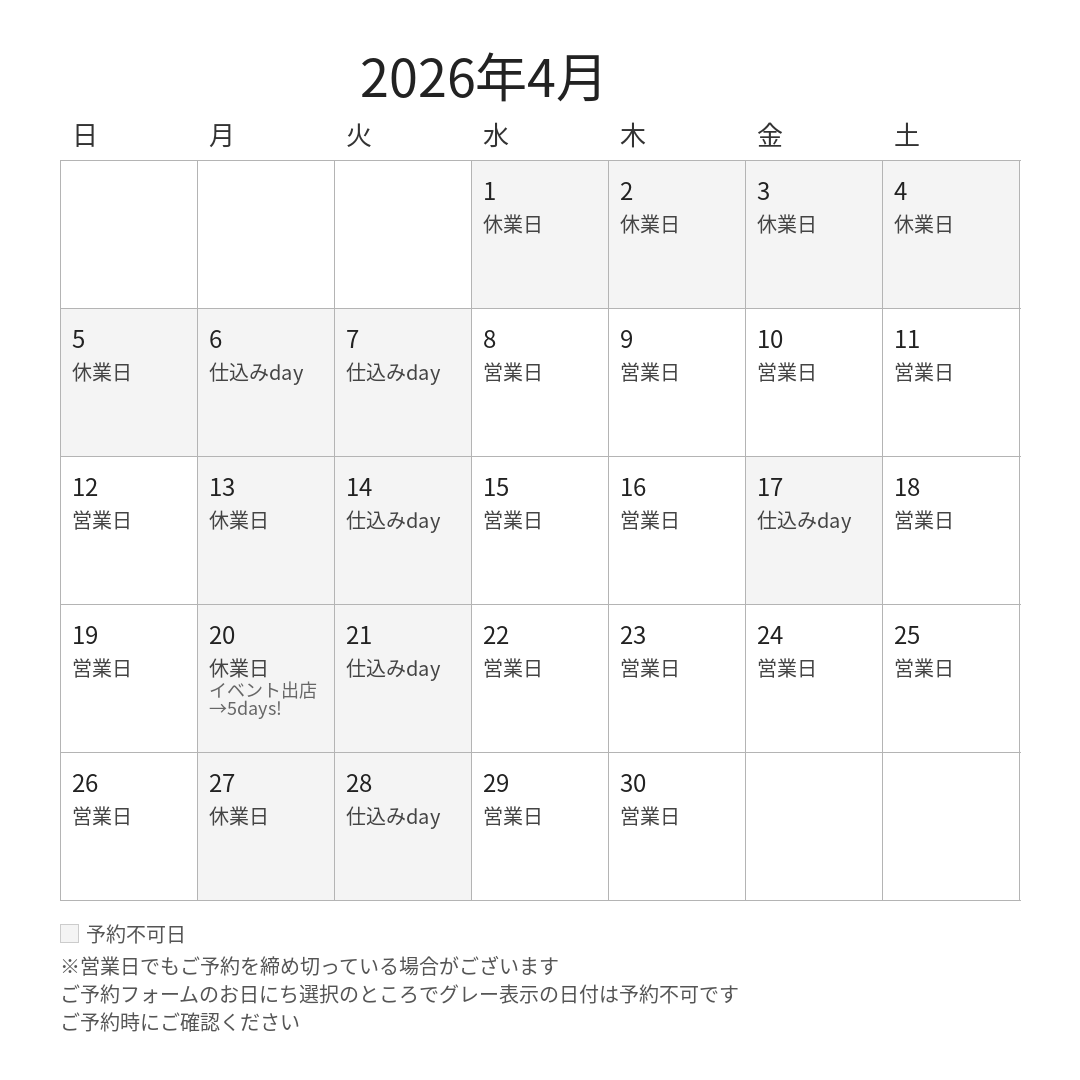 ご予約フォーム公開時(毎月20日~22日頃)に