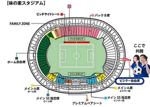 ・チケットは、ビジターサポーターゾーン(自由席)となります。