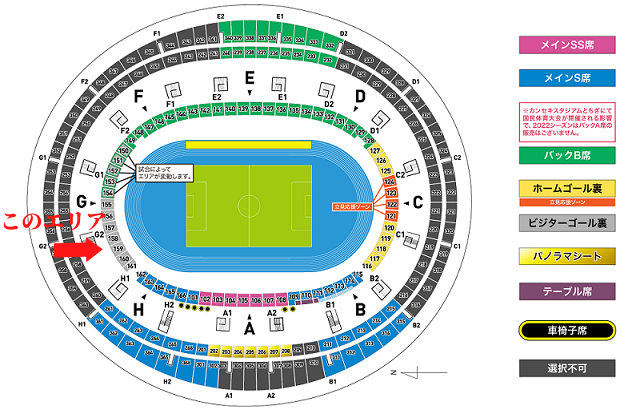 ※試合会場到着はキックオフ1時間30分~2時間前を予定しております。開場は2時間前になります。