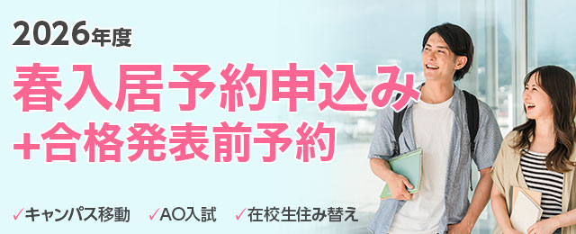 年内に進学先が決まる新入生の皆様、キャンパス移動等でお住み替えの在学生の皆様向けに春入居予約申し込み受付中!