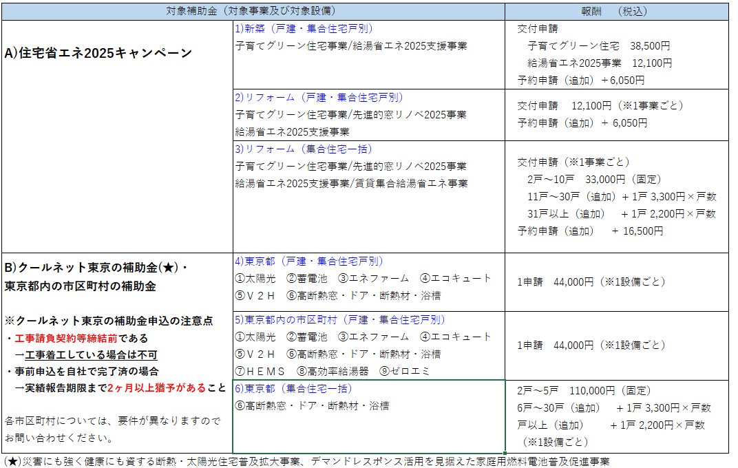 B)クールネット東京の補助金、東京都内市区町村の補助金