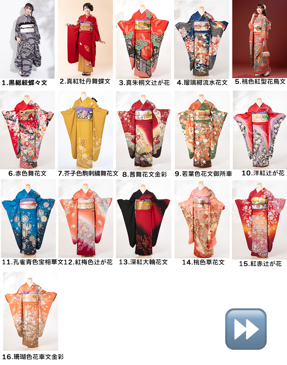 試着希望振袖を、選択してください。(4着以内)
